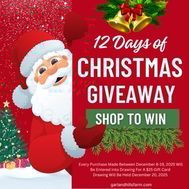 12 Days of Christmas sale December 8-19th 15% off purchase with code 12DAYSPROMO Every purchase is an entry to win a $25 gift card!!!!